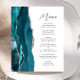 Budget Teal Blue Silver Agate Script Wedding Menu