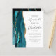 The left-hand edge of this elegant modern wedding invitation features a teal watercolor agate border trimmed with faux gold glitter. The customisable text combines script and sans serif fonts in charcoal grey on a white background. The reverse side features a matching teal and gold agate design.