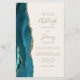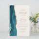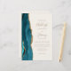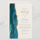 Save the cost of printing and mailing separate RSVP cards with this elegant modern all-in-one budget wedding invitation. The left-hand edge features a teal blue watercolor agate border trimmed with gold faux glitter. The customisable text combines gold-coloured handwriting, copperplate and italic fonts on an ivory background. The reverse side provides space for wedding details, along with a QR code guests can scan to visit your website and RSVP.