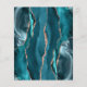 The left-hand edge of this elegant modern wedding invitation features a teal blue watercolor agate border trimmed with faux rose gold glitter. The customisable text combines dusty rose handwriting script and copperplate fonts on a blush pink background. The reverse side features a matching teal and rose gold agate design.
