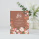 Rustic fall 80th birthday party invitation. Bright white flowers pop against the deep terracotta, brown background. Deep orange wildflowers, fluffy pink flowers and deep green leaves create a pretty autumn display of meadow flowers. White text and trendy calligraphy add charming details.