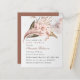 This Budget Black Boho Baby Shower Invitations - features white handwritten and elegant script text with bouqet of pale peach orchid and pampas grass on the white texture background with golden marble washes . The reverse side of the invitation is made in a delicate terracotta colour.