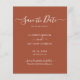 Budget elegant script minimalist modern non photo burnt orange earthy terracotta rust boho desert wedding save the date announcement personalised affordable low budget flyer. Simple clean design template feature an elegant cursive hand lettering typography script „Save the Date” text. This classic card perfect for a couple who wants a traditional save the date with a modern touch, without a photo. If you need help or matching items, please contact designer.