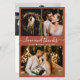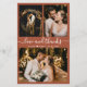 Budget, Modern, Terracotta Elegant Hand Lettered Wedding Three Photo Collage Thank You personalised affordable low budget thin card. Minimalist wedding thank you card template featuring three photo on the front and one photo on the back side. With the text "Love and thanks" in a swirly hand lettered calligraphy script font with swashes on earthy terracotta, rust burnt orange background. Little heart between the names.