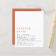 Simple Text Terracotta Wedding Evening Party Invite. A budget price SMALLER 4.5” x 5.6” alternative. Available in a SEMI GLOSS 110 lb CARD STOCK which is the default option (recommended for invitations), OR a SATIN FINISH 80 lb THINNER PAPER STOCK (ideal for enclosures). Envelopes are an optional extra and are slightly larger than the card size.The header is in large stylish lowercase in terracotta with the details beneath and lots of white space on a square shape for a contemporary style. Easily personalise the text to your own details. A coordinating terracotta is also on the back.