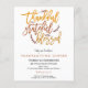 Thankful Grateful Blessed Thanksgiving Dinner invitation. A budget friendly SMALLER 4.5” x 5.6” alternative. Available in a SEMI GLOSS 110 lb CARD STOCK or a SATIN FINISH 80 lb THINNER PAPER STOCK. Envelopes are an optional extra. Inspiring words Thankful, Grateful, Blessed in an elegant script in autumnal colours are at the top half, and the details are below against a white background. Easily personalise the text with your details.