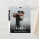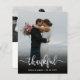 Budget Modern Hand Lettered Wedding "Thankful" Script Photo Thank You Cards. Modern Stylish wedding thank you card template featuring a full vertical photo on the front with overlay text "Thankful" in a hand lettered typography script font in white on the picture. Add your custom name and thank you message. If you prefer to handwrite your note, just delete the sample text to make more space. Pretty, elegant low cost cheap cards. If You need help, please contact designer!