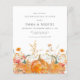 Vibrant orange pumpkins are surrounded by delicate fall boho wildflowers. Soft grey text gives it a simple and modern aesthetic.