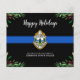 Send Merry Christmas greetings to friends, business' , fellow law enforcement departments and your community with this unique Thin Blue Line Police Department Christmas Card - Modern black and blue with holly leaves and berries. Personalise with police department logo, message and department . These budget merry christmas postcards need to be mailed as oversized postcards so may incur standard postage fees but they don't need an envelope or a return address label. COPYRIGHT © 2020 Judy Burrows, Black Dog Art - All Rights Reserved. Budget Thin Blue Line Police Department Christmas Holiday Postcard