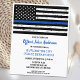 Celebrate years of dedicated service and invite friends and family to your law enforcement retirement with this Thin Blue Line Police Retirement Invitation - USA American flag design in Police Flag colours , distressed design . These budget retirement invitation postcards need to be mailed as oversized postcards so may incur standard postage fees but they don't need an envelope or a return address label. Personalise with name, police department, address venue, and rsvp details. This police officer retirement invitation can be used for police academy graduation, simply change the text when personalising. See our collection for matching police retirement gifts, party favours, and supplies. COPYRIGHT © 2020 Judy Burrows, Black Dog Art - All Rights Reserved. Budget Thin Blue Line Police Retirement Invitation