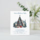 Budget Traditional Scene Christmas Party Invite. A budget price smaller 4.5 x 5.6" semi gloss card, similar in thickness to a postcard. There is ONE per sheet. A festive traditional scene featuring a beautiful decorated tree to invite your guests to your holiday gathering. Easily personalise with details.