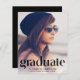 A budget friendly option to announce your graduate's achievements, this stylish graduation announcement features your grad's photo, "Graduate" written in a trendy type typography with unique lines and his or her name, school and class year.