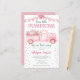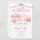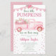 This adorable, triplet girl, 5.5" x 8.5" budget shower by mail baby shower invitation featuring a watercolor pink pickup truck loaded with pink and white pumpkins with gold glitter details and sprays of eucalyptus and multi-hued pink flowers with gold glitter leaves would be perfect for your shower! It's fabulous for a fall or harvest time baby shower. It has a coordinating soft pink back with tiny white polka dots. So cute for welcoming all three sweet new babies!
