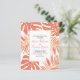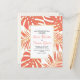 Modern living coral and gold monstera and palm leaves BUDGET tropical wedding invitation. The focus of this gorgeous design is a pattern of tropical living coral leaves with gold outline while your text is in a white frame. The back includes a gold polka dot pattern.