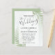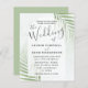Your guests will love this elegant, sophisticated tropical design. It features large tropical foliage in watercolor on a soft sage green watercolor background. Modern calligraphy is set within an arch shaped transparent overlay. Easy to edit with your unique details.