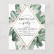 Budget Tropical Magnolia Flowers with Floral Greenery Palm and Faux Gold Foil Geometric Border Spring or Summer Any Age Birthday Party Invitations - includes beautiful and elegant script typography with modern tropical botanical flowers and greenery for the special 13th, 15th, 16th, 18th, 30th, 40th, 50th, 60th, 70th, 80th, 90th, 100th birthday party.