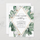 Budget Tropical Magnolia Flowers with Floral Greenery Palm and Faux Gold Foil Geometric Border Spring or Summer Sweet Sixteen Birthday Party Invitations - includes beautiful and elegant script typography with modern tropical botanical flowers and greenery for the special 16th birthday party.
