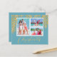 Small 4.5" x 5.6" paper Christmas cards feature gold faux glitter tropical palm fronds on turquoise blue, your favourite photos and names on these holiday photo cards. These affordable holiday photo cards are printed on 110 lb paper available in 3 sizes. **WHITE ENVELOPES ARE OPTIONAL ON ORDER PAGE. Be sure to double-check your order before adding it to your cart as what you see on the screen is what will be printed. The Live Design Service can help you with your design layout if needed or changing the background colour.