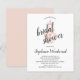 A faux rose gold foil pineapple stencil is the backdrop for the words "bridal shower" in elegant dark grey handwriting script. The name of the bride-to-be appears in matching script, with the rest of the text in sans serif font. Customise with your own preferred wording. The reverse is a matching shade of rose gold.