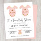 Celebrate the mother-to-be of twin girls with this budget-friendly baby shower invitation featuring retro inspired pastel pink and gold watercolors of baby one piece snapsuit outfits with "It's a Girl!" written across each (you can customise this). "It's a Twins Baby Shower" is written underneath in a stylish contemporary script. A small pastel pink and gold watercolor of a teddy bear at the bottom of the invitation separates party location and RSVP details.