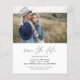 Budget Wedding Save the Date Cards that have a photo on the front and back (two photo). The Save the Date cards contain a modern hand lettered cursive script typography that are elegant, simple and modern to use after you minimalist simple wedding day celebration.