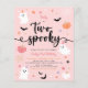 Budget two spooky pink Halloween cute ghost 2nd birthday party invitation. Modern Halloween-themed design for a spooky party! This birthday invitation features spider's webs, ghosts, pumpkins, bats, spiders, leaves, corns, stars and daisies. This invite is great for little girls!