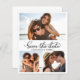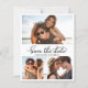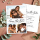 Budget Minimalist Elegant Calligraphy Script 3 Photo Collage Wedding Save The Date Cards in Black and White. This beautifully delicate design is tailored for contemporary weddings, exuding a romantic charm that captivates. Boasting a graceful 3 photo grid collage and whimsical calligraphy in a hand-lettered swash tail font, these cards are a testament to modern elegance. Effortlessly personalise them with your cherished wedding details and pictures, offering an affordable yet sophisticated touch to announce your special day.