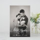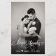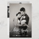 Budget Eleant Modern Handwriting Wedding Photo "Love and Thanks" script Thank You Cards. Stylish wedding thank you card template featuring a full vertical photo on the front with overlay text "Love and Thanks" in a swirly hand lettered calligraphy script overlay with swash in white on the picture. Add your custom name and thank you message. If you prefer to handwrite your note, just delete the sample text to make more space. If You need help, please contact designer!