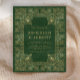 This elegant wedding invitation features an ornate vintage gold frame on a distressed green background in imitation of an antique book cover. Customise the gold-coloured text with your names and wedding details. The frame design is repeated on the back of the card.