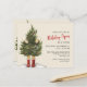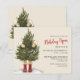 Invite friends to celebrate the season with these open house party flyer. Design features a watercolor illustration of a Christmas tree with funny red boots and knitted mittens bright red text holiday open house. Customise this funny rustic invitation with your event details.