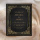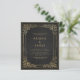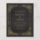 This elegant wedding invitation features an ornate vintage gold frame on a distressed off-black background in imitation of an antique book cover. Customise the gold-coloured text with your names and wedding details. The frame design is repeated on the back of the card.