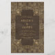 This elegant wedding invitation features an ornate vintage gold frame on a distressed brown background in imitation of an antique book cover. Customise the gold-coloured text with your names and wedding details. The reverse side repeats the frame motif and provides space for wedding details, along with a QR code guests can scan to visit your website and RSVP, which saves the cost of printing and mailing separate RSVP cards.