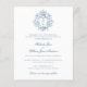 This budget-friendly wedding invitation features a sophisticated design with a vintage-inspired crest adorned with intricate botanical details and a customisable monogram, offering timeless elegance in a compact format. The refined combination of classic serif and flowing script fonts conveys a sense of formality and romance, while the soft blue colour palette enhances the graceful and traditional aesthetic. The back provides space for a personal touch with a photo of the couple, adding warmth and charm to this smaller, more economical option. Perfect for couples seeking affordable elegance without compromising on style, this invitation beautifully balances refinement and practicality.