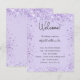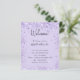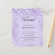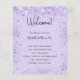 A modern, elegant wedding program, timeline. A violet, lavender coloured background decorated with faux glitter dust. Personalise and add your names and wedding details. Black coloured letters. If you have more text it's possible to reduce the line space.