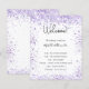 A modern, elegant wedding program, timeline. A white background decorated with violet, lavender coloured faux glitter dust. Personalise and add your names and wedding details. Black coloured letters. If you have more text it's possible to reduce the line space.