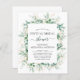 Budget Greenery Botanical Eucalyptus Foliage Greenery Watercolor Spring Wedding Virtual Bridal Shower Invitations on white background - includes modern beautiful and elegant script typography with modern botanical leaves and greenery for the special Bride to Be celebration.