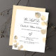 A white background decorated with golden eucalyptus, sprigs. Personalise and your name and ceremony details.