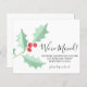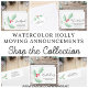 It is decorated with watercolor green holly and red berries.