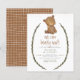Budget and cute bear theme gender-neutral baby shower featuring a hand-painted illustration of a baby bear cub with a greenery wreath. The text says "we can bearly wait!" in handwritten-style typography. Design features a rustic boho text layout. Cards reverse to a brown background with white lines. This invitation is great for a gender-neutral shower in the fall. To make advanced changes, please select the "Click to customise further" option under "Personalise this template". As part of the budget selection on Zazzle, this sheet isn't a standard invite size or paper quality. If you want this design on an invitation card you can find it in our store or use the Zazzle Make Machine to transfer it onto the product of your choice. Contact me for matching items or for customisation!