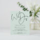 There are two paper options to choose from for this size (4.5 x 5.6”) in the Budget range. For this product, I would recommend the semi-gloss which is a 110 gsm card stock, similar in thickness to a postcard. The Satin option is a much thinner paper 80gsm. The default is set to semi-gloss. PLEASE NOTE there is ONE invite per sheet. Script We Do Mint QR Code Wedding Invitation. Add your QR code to your wedding website on the back makes this a convenient option for your guests to RSVP and see all the details without the need for separate RSVP and details cards. A simple yet elegant design on a background of pastel mint green. Stylish set script We Do takes centre stage at the top.The rest of the text you can easily personalise. Text and background colours can be changed if you wish to better suit your wedding theme via the customise further option.