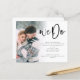 Budget We Do Script Photo QR Code Wedding Invitation. A budget price SMALLER 4.5” x 5.6” alternative. Available in a SEMI-GLOSS 110 lb CARD STOCK which is the default option (thicker for invitations), OR a SATIN FINISH 80 lb THINNER PAPER STOCK (ideal for enclosures). Add your QR code to your wedding website on the back making this a convenient option for your guests to RSVP and see all the details without the need for separate RSVP and details cards. You can create QR codes for free online. Simply search “QR code creator” and lots of options come up to create for free. A minimalist fun design to let everyone know your happy news. Simply replace the sample photo with your own favourite. A gradient overlay layer is on top of your photo so it fades out as it reaches the centre with the text partially overlaid on top. We Do is in a stylish bold set script and easily personalise the rest of the text.