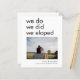 A budget price SMALLER 4.5” x 5.6” alternative. Available in a SEMI-GLOSS 110 lb CARD STOCK which is the default option (thicker for invitations), OR a SATIN FINISH 80 lb THINNER PAPER STOCK (ideal for enclosures). Envelopes are an optional extra and are slightly larger than the card size. You can change text and background colours to any of your choice. Contemporary style to let your friends know of your elopement with simplistic modern typography, We Do We Did We Eloped on the front in black, beneath which add your favourite photo from your elopement wedding, and personalise your names, and date and location of your ceremony. On the back, easily personalise with your announcement. Text and background colours can be changed if you wish via the Customise Further option.