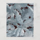 A budget wedding invitation that combines vintage and modern elements. On a background of blueish grey acanthus leaves on black (a vintage William Morris pattern, now in the public domain), there is a white arch with text in it. The word Wedding and the names are written in an elegant calligraphic script, the first line is arched text.