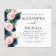 Budget Navy Blue and Blush Pink Modern and Elegant Floral Watercolor Spring Wedding Invitations - includes beautiful and elegant script typography with modern botanical flowers and greenery for the special Wedding day celebration.
