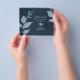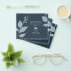 This simple yet elegant save the date features modern botanical leaves in dusty blue. Use the template fields to update your details in white over a midnight blue background. Change the colour of the leaves and background to suite your wedding theme. The card reverses to a complimentary colour. To see the complete wedding stationery suite visit www.zazzle.com/dotellabelle