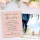 Budget-friendly blush pink elopement or smaller wedding announcement to inform family and friends that your wedding plans changed, and you eloped or reduced the number of guests at your wedding, and to invite them to a wedding reception or celebration party. The front features "Happily Ever After Party" in a mix of simple typography and an elegant script with swashes, and you can customise your message and invitation in more detail and your names in a signature-like script. The reverse side features your favourite wedding photo, your first names and wedding date.