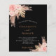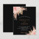 For a modern boho style wedding. A stylish black background. Decorated with rose gold and pink florals, roses and pampas grass. Personalise and add names and details.