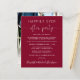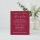 Budget-friendly burgundy elopement or smaller wedding announcement and post-wedding reception or celebration party. The front features "Happily Ever After Party" in a mix of simple white typography and an elegant white script with swashes, and you can personalise your message and invitation in more detail and your names in a signature-like script. The reverse side features your favourite wedding photo, your first names and wedding date.