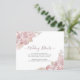 Budget Dusty Pink and Creme Roses Wedding details - features dusty pink handwritten and elegant black script with blush pink roses and creme beige dry leaves. The reverse side of this romantic Enclosure Wedding details Card is dusty pink.