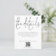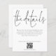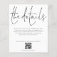 A budget price paper alternative in a classic black and white. Envelopes are an optional extra. Let your guests know details such as directions and accommodation information for your wedding when you send their invitations. This elegant design has set stylish large typography for the heading The Details and the rest of the text can be easily personalised to your words along with your website QR code. You can choose any colours of your choice for the text and background colours on both sides via the customise further option.